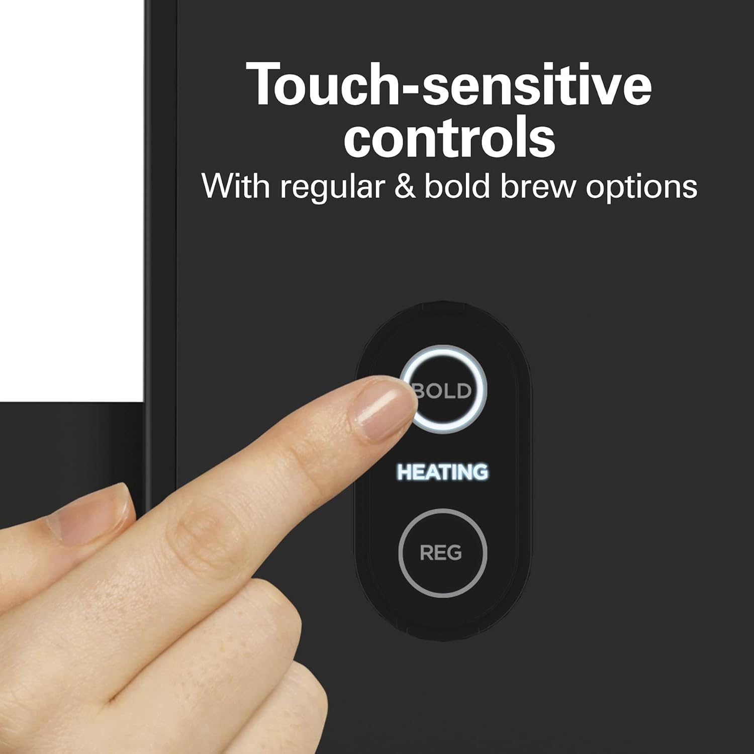 - TOUCH-SENSITIVE CONTROLS WITH REGULAR AND BOLD BREW OPTIONS: These high-tech, capacitive-touch controls are sensitive to a light tap, so it's easy to select your settings, such as brewing coffee with regular or bold strength